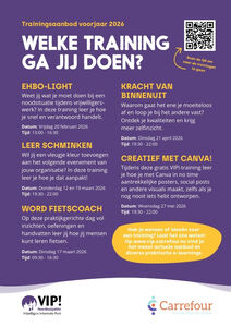 Hiernaast vind je de poster met daarop het aanbod! Het volledige aanbod en aanmelden kan via de knop 'trainingen' in het menu van deze site.